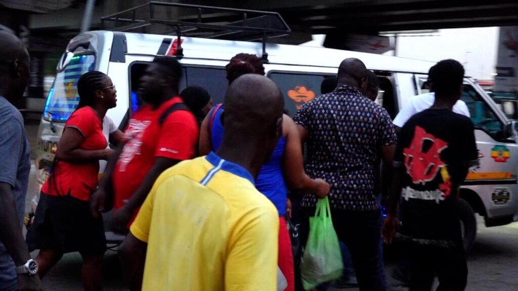 At the Kwame Nkrumah Circle, one of Accra’s busiest transport hubs, the struggle for public transport has turned into a daily battle of physical strength, leaving women, children, and the elderly at a severe disadvantage. At the footbridge loading stop near Circle Ebony, long queues collapse into disorder the moment a vehicle arrives, with boarding determined not by order, but by force.