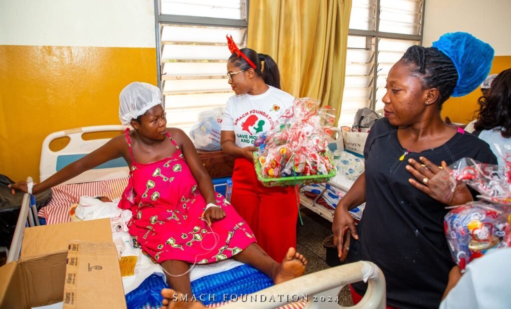 The new mothers at Ga North Municipal Hospital were overwhelmed with emotion as Afia presented them with gifts, including baby essentials and personal care items.