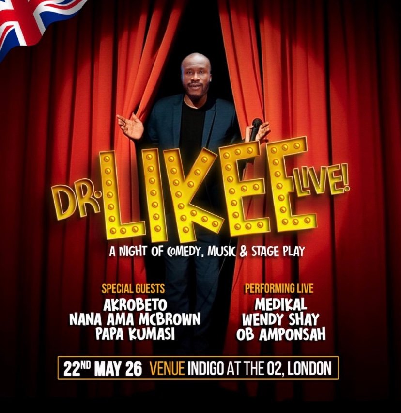 The comedy powerhouse will headline DR LIKEE LIVE, a night of comedy, music and stage play, scheduled for 22nd May 2026 at the prestigious Indigo at The O2, London. The event marks another major milestone in the comedian’s growing international appeal, following his massive popularity across Ghana and the diaspora.