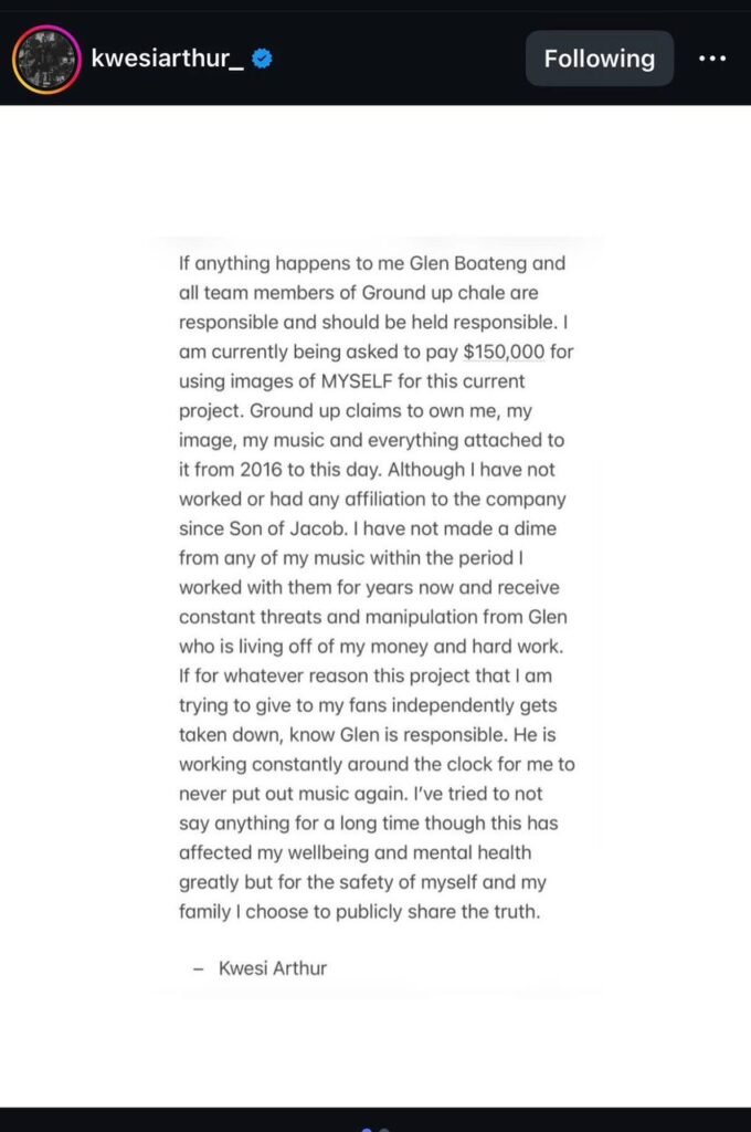 His reaction follows widespread discussions about Kwesi Arthur’s managerial and contractual issues. With this new clarity, Kweku Flick emphasized that there was never any personal problem between them.