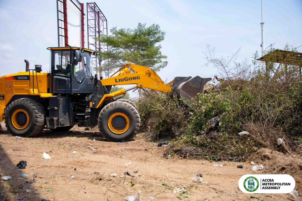 The Mayor of Accra, Hon. Michael Kpakpo Allotey has led a team of sanitation and environmental health officers from the Okaikoi South Sub-Metropolitan District to clear overgrown vegetation and solid waste at an abandoned open space at the Alajo–Avenor intersection in Accra.