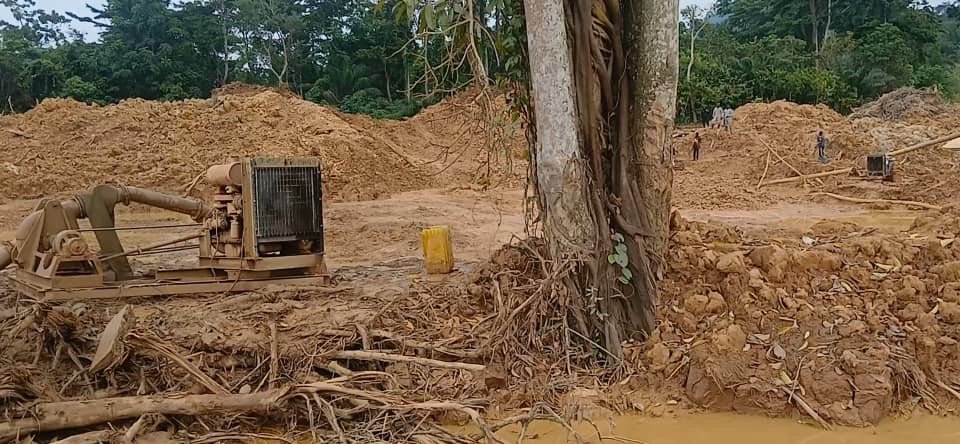 The District Chief Executive (DCE) for the Ahafo Ano South West District Assembly, Mr. Abubakar Sedik on Thursday, July 17, 2024, led an anti-galamsey operation to clamp down on illegal mining activity going on at Awadua, a community close to Wioso.