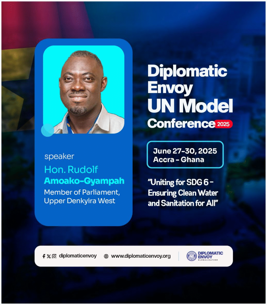 The Member of Parliament for the Upper Denkyira West constituency, Hon. Rudolf Amoako-Gyampah, has been invited to join dignitaries from across the continent and beyond to speak at the Diplomatic Envoy United Nations Model conference in Accra.