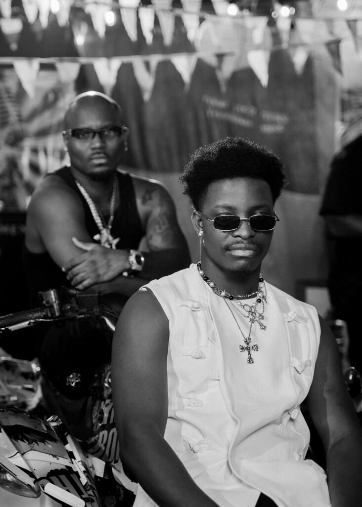 Lasmid and King Promise are quietly setting the tone for what collaboration should look like in modern Ghanaian music. Fresh off the set of the visuals for their joint record “No Issues”, the two artists are seen embracing a relaxed but confident energy that mirrors the spirit of the song itself.